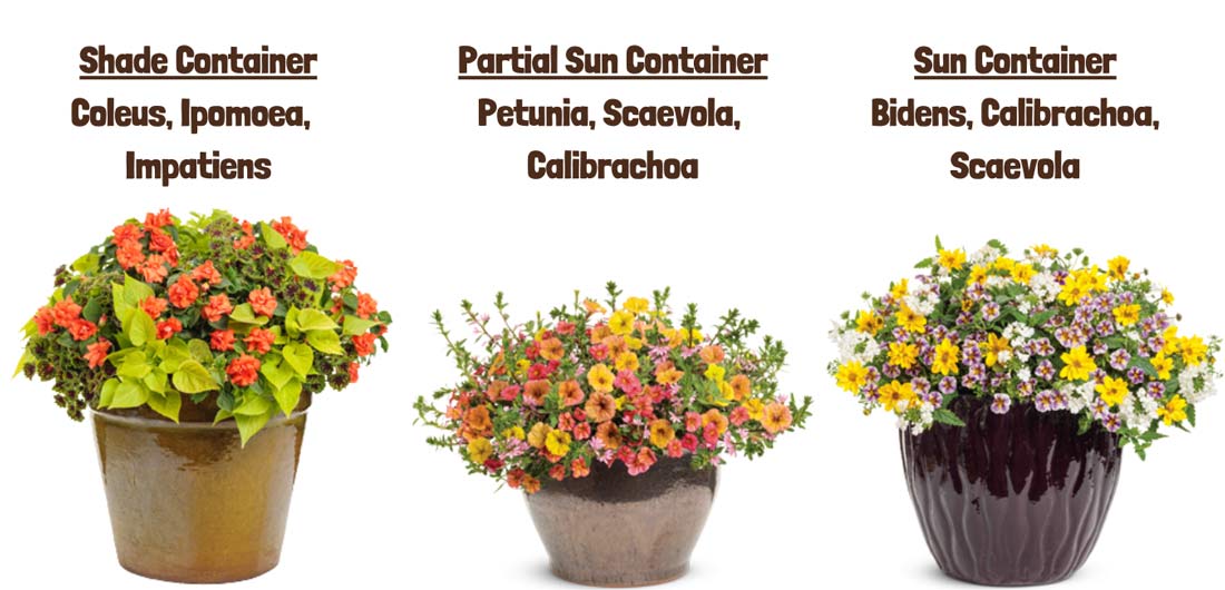 Proven winners also provides three annual ‘recipes’ for your container garden or even a hanging basket! One arrangement does best in shade, one in part sun/part shade, and the final in full sun. Be sure to consider these guidelines as plants will not thrive if they are not given the amount of sun or shade they require. Check out these beautiful arrangements below!