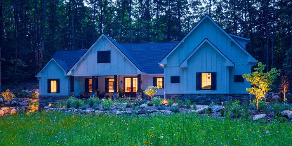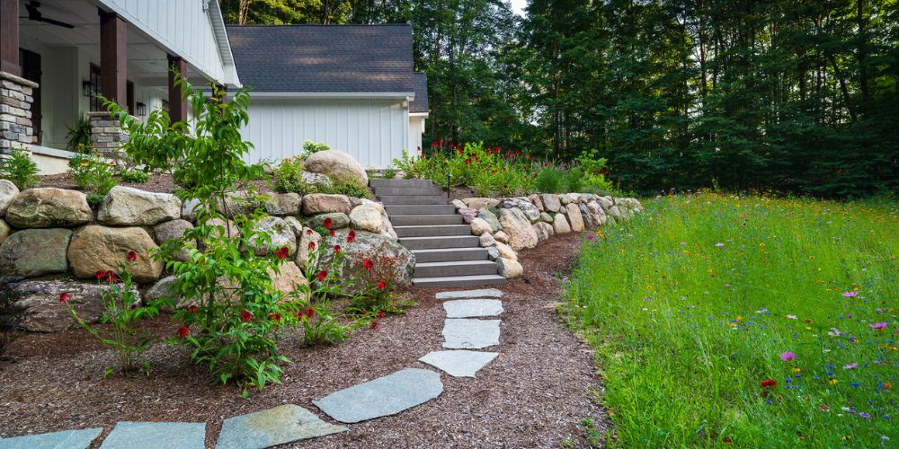 That’s exactly why our clients reached out to us at TruNorth Landscaping. Recommended by a friend, and working alongside Meiste Homes, they contacted our team early in the construction process, looking to create a landscape that matched the beauty of their soon-to-be home. Their dream was clear: a retirement sanctuary nestled in the woods, complete with safe, usable outdoor spaces where they could relax, entertain, and enjoy nature in comfort.