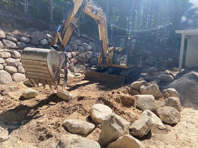 Lakefront Cottage Boulder Wall, Steps, and Gardens